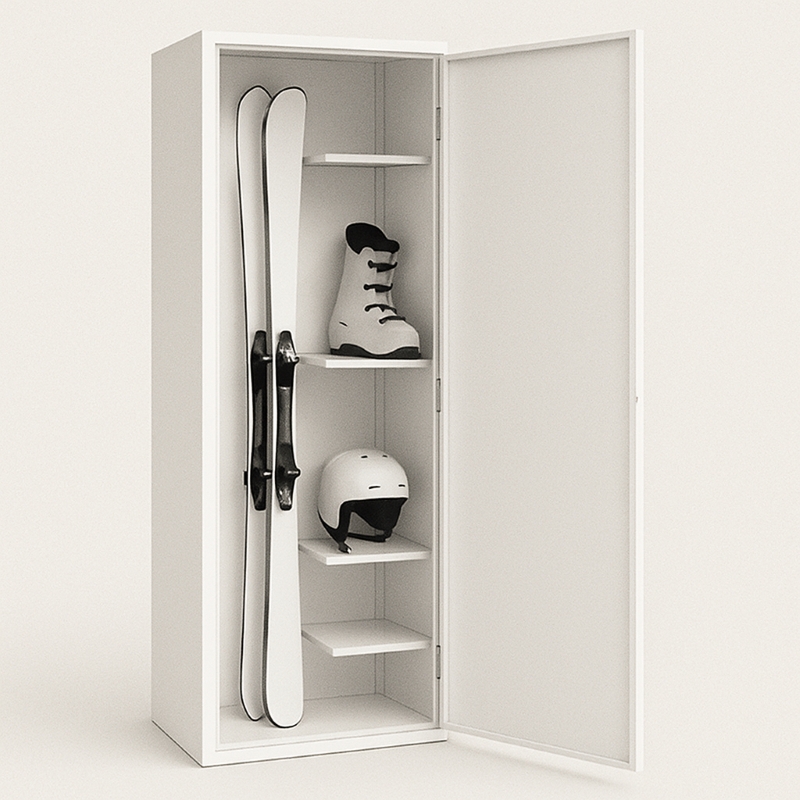 Affitta un posto in un Armadio Riscaldato dove potete lasciare il materiale da sci o snowboard per una singola persona (un paio di sci, un paio di scarponi e un casco).